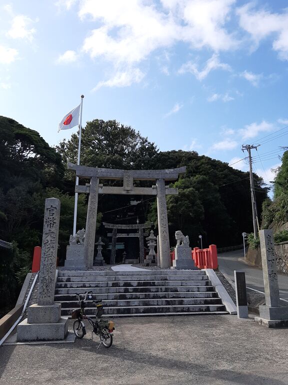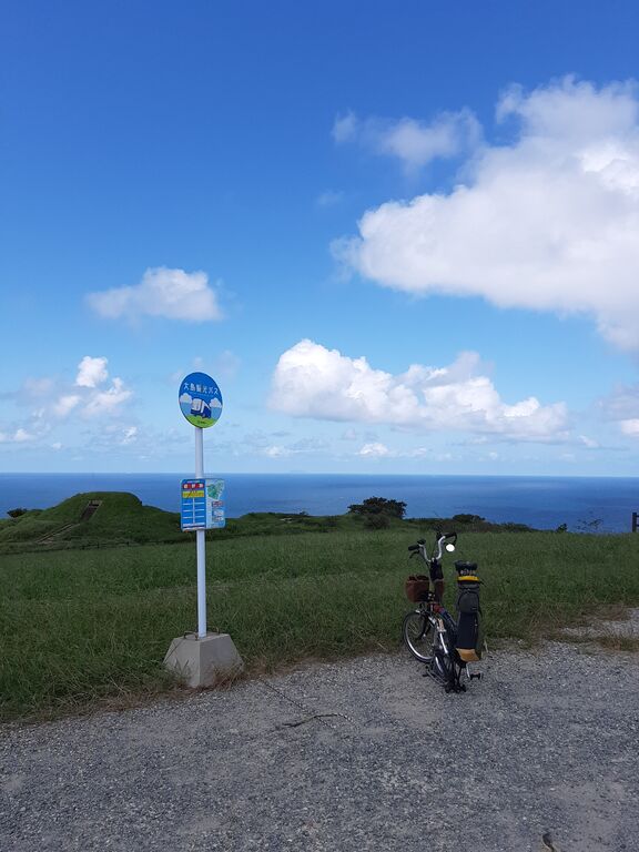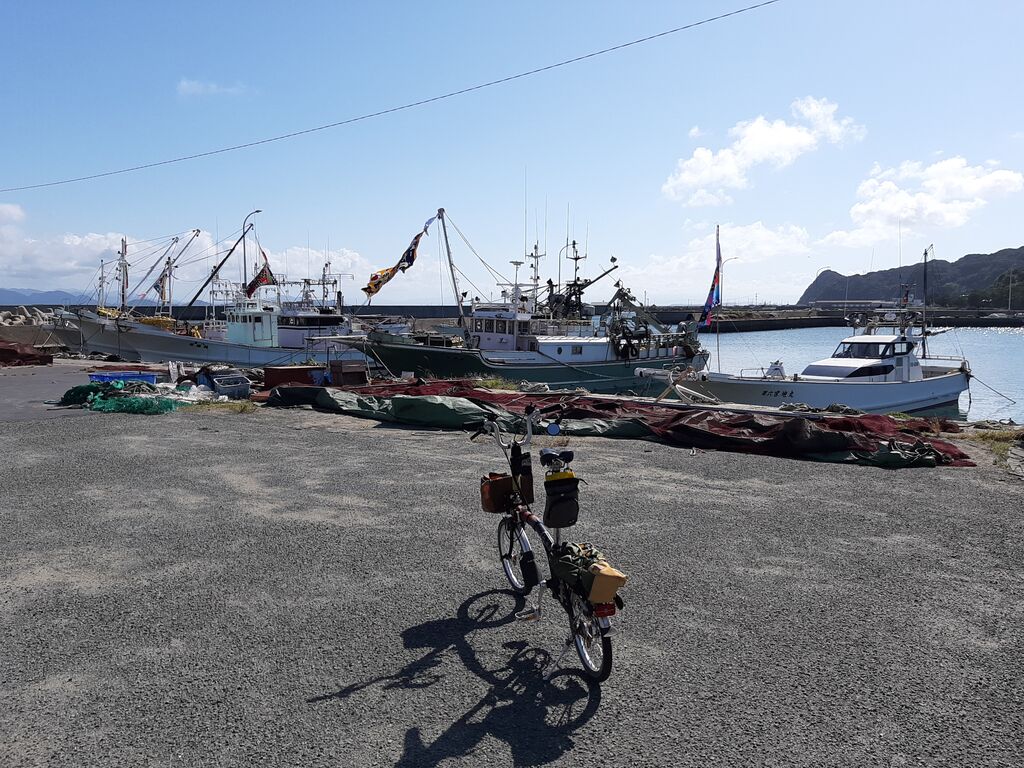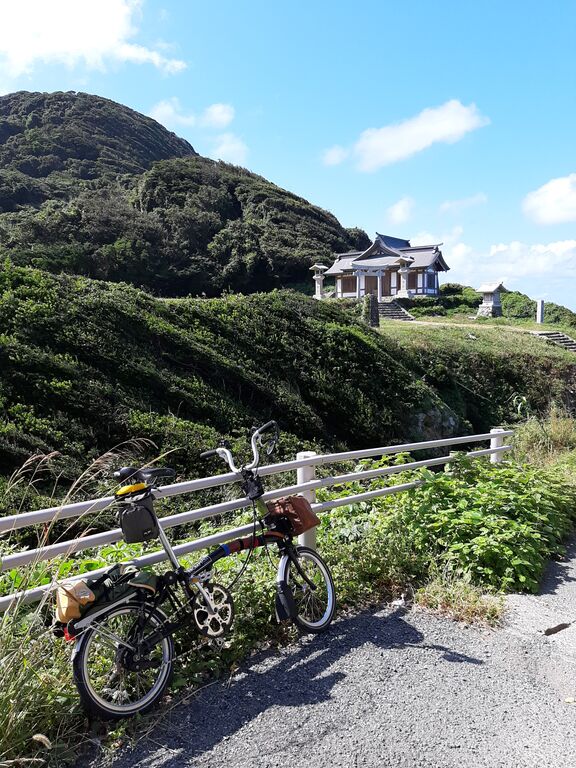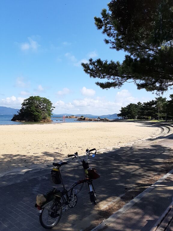 After 1.5 hour ride from home, placed my Brompton at Hokuto Mizukumi Park on the coast near Michi-no-Eki Munakata.