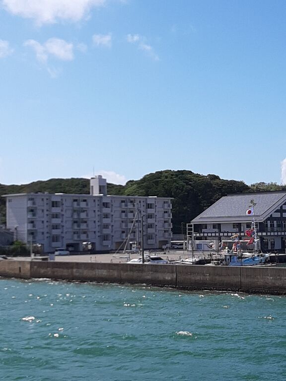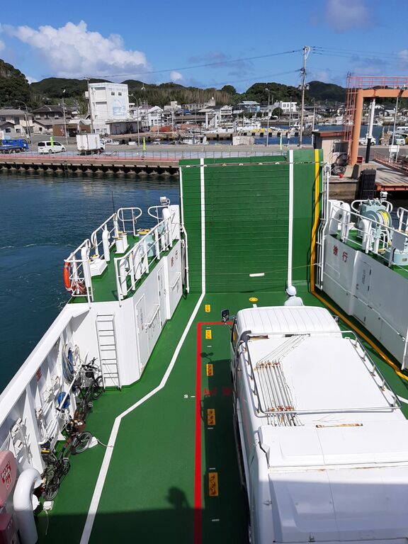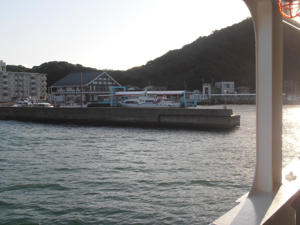 The ferry changed direction before docking at Oshima Port.