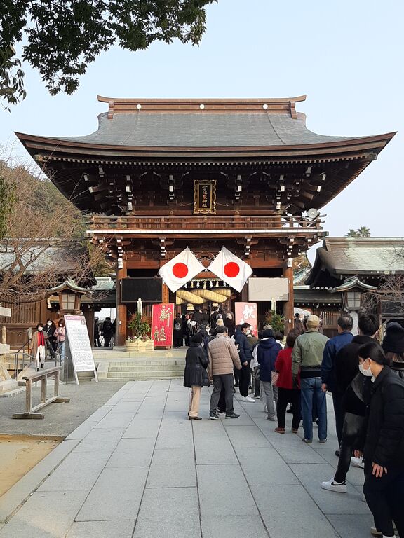 From around the top of the stone steps, there was a long queue of people waiting for the New Year worship.