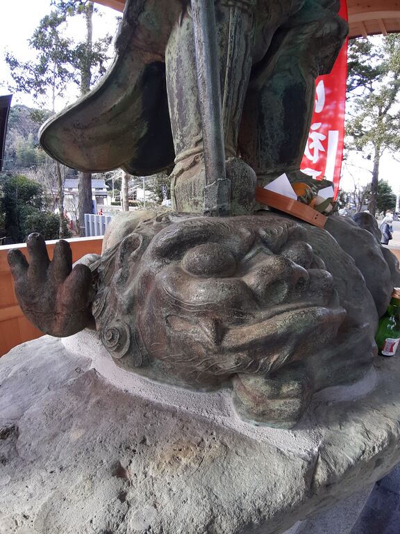 The look of the Jyaki (malicious ogre) being trampled by Bishamonten also seems different