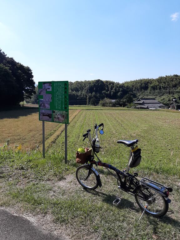 A sign board "Saikaido" at the position overlooking the rice field with an open view