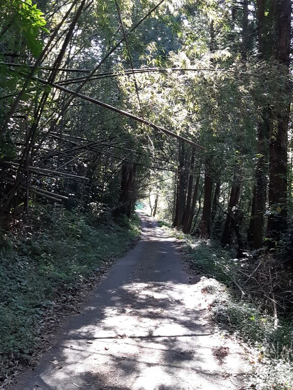 For the first time, climbed a steep slope and followed the road through the village, as a short cut.