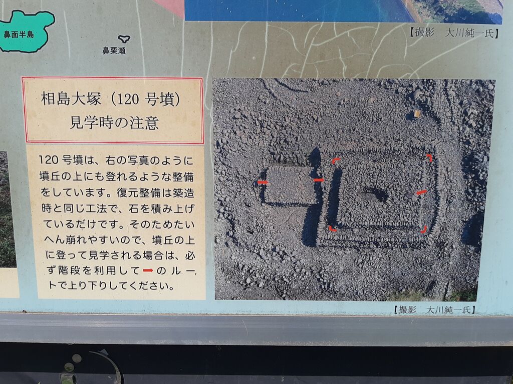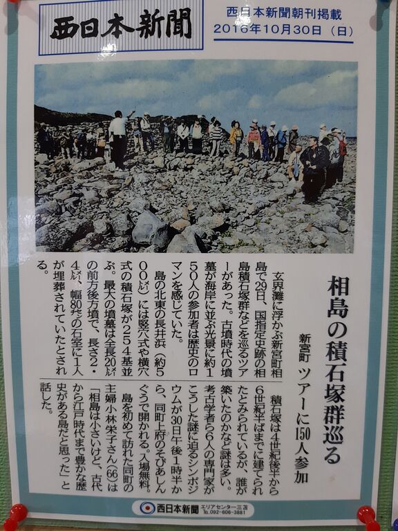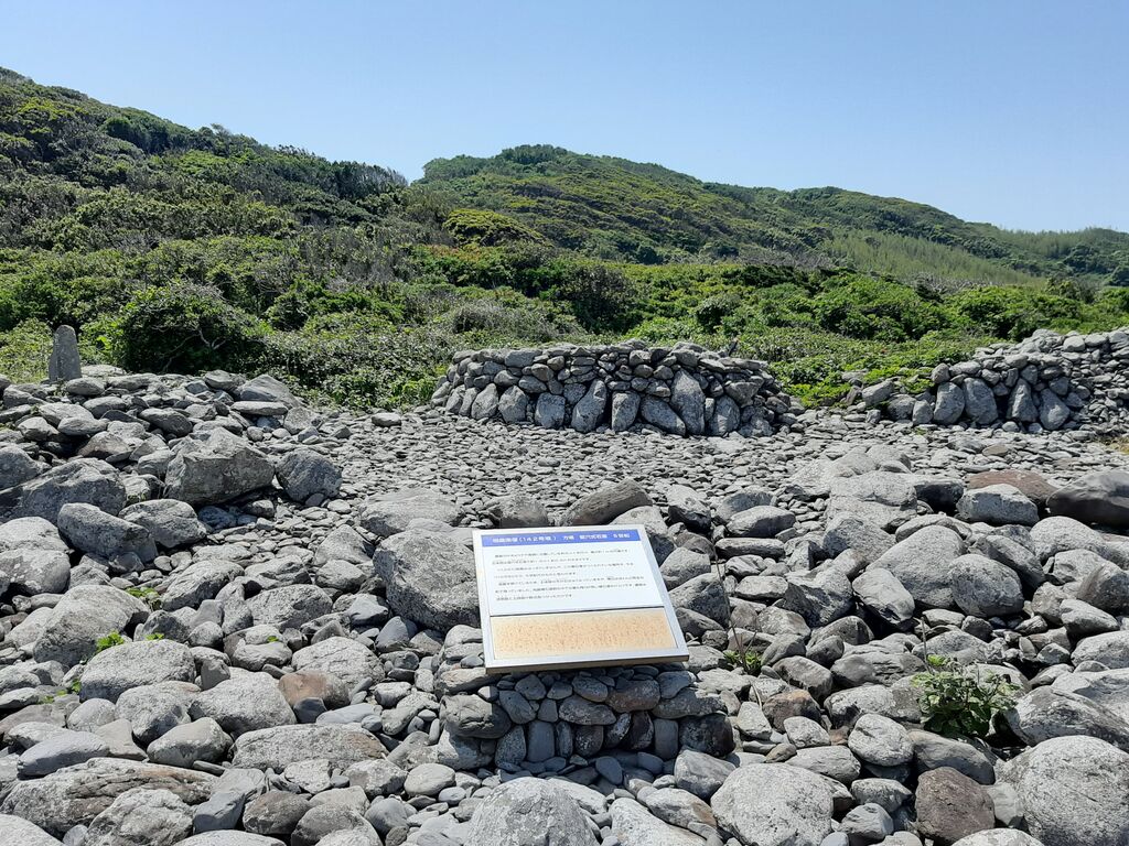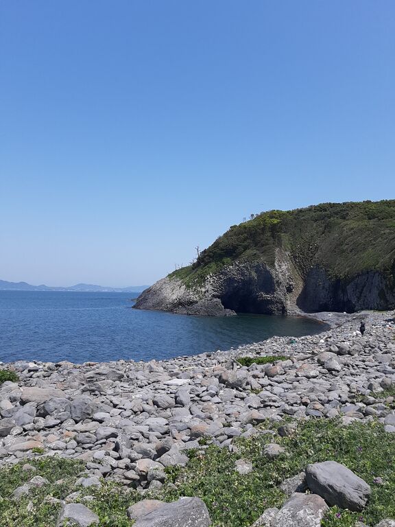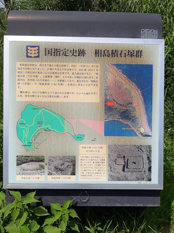 Decided to tour the Ai-no-Shima Southern Tumulus, the Korean envoy-related burial ground, Hana-Guri-Se, and Hana-Dura Peninsula this time, although the path is difficult to walk due to the large and small rocks scattered on the tour road.