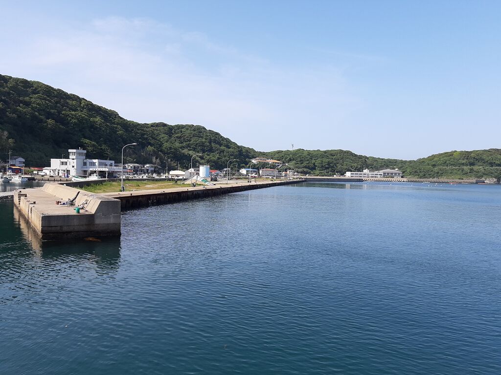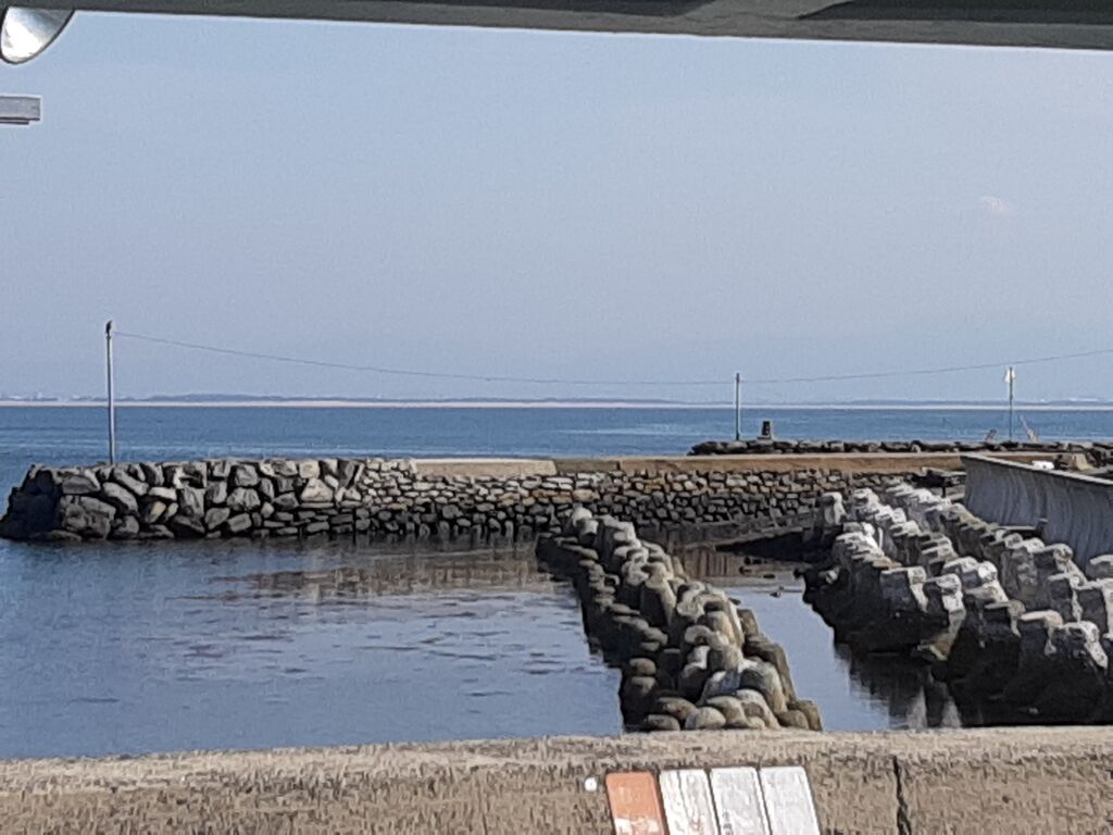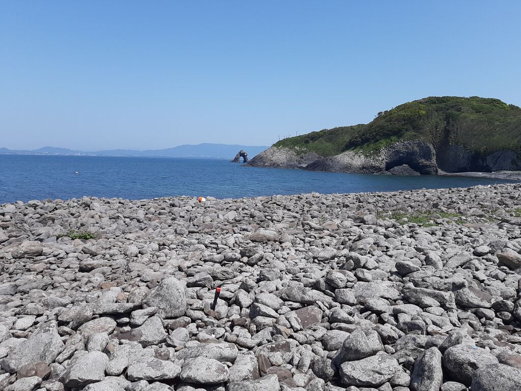 My lunch of convenience store rice balls, curry-flavoured fish cake, tai-chikuwa, mini doughnuts, and roasted tea was meagre but felt happy listening to the pleasant sea breeze and waves hitting the shore while gazing at Miyaji Beach, Miyajitake, and Tsuyazaki across the sea.