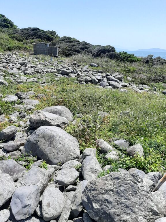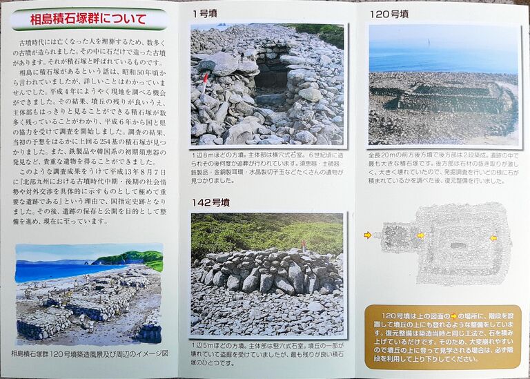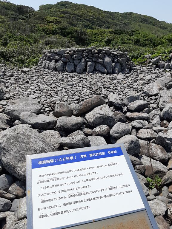 In contrast, the stone-stacked burial mound group in Ai-no-Shima is in the shape of a front-square mound & a rear-square mound.