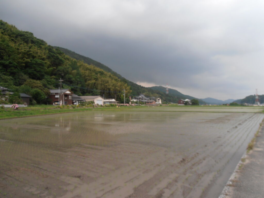 Despite trying to find shelter from the rain, there was no clever spot along the rural road, surrounded by rice fields on both sides.