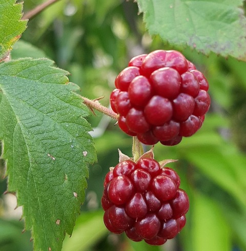 I don't know if someone forgot to pick them or intentionally left them as charms on the strawberry tree, but ripe fruits were visible among the green leaves.