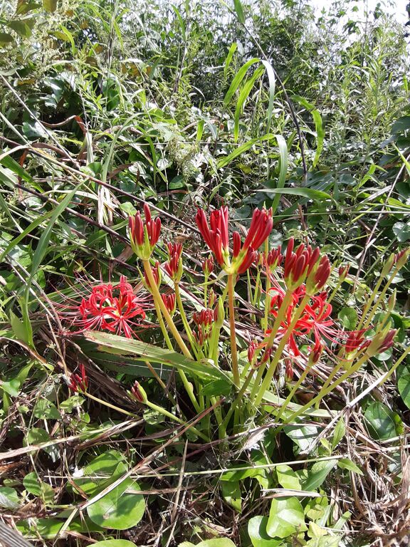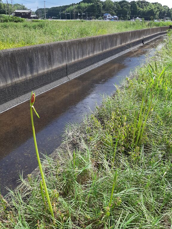 Finally, along the embankment of the irrigation channel, I spotted some buds.