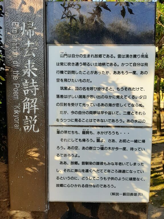 I recall the refined lady who, during my previous visit, kindly informed me, "If you stand in front of the 'Kikyorai' poem monument, you can listen to an automatic audio introduction."