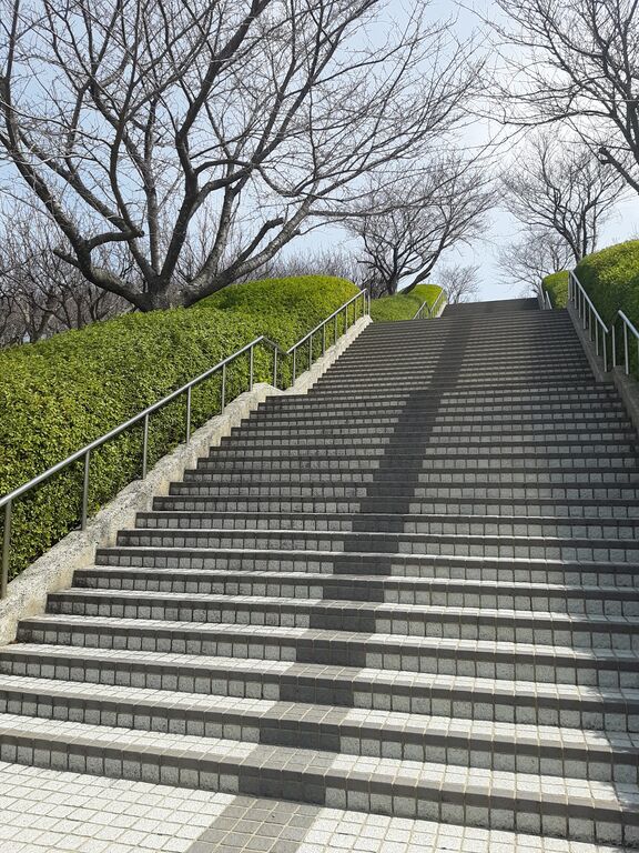 Looking up at these daunting stone steps, I remembered seeing high school students in uniforms sprinting up and down energetically.