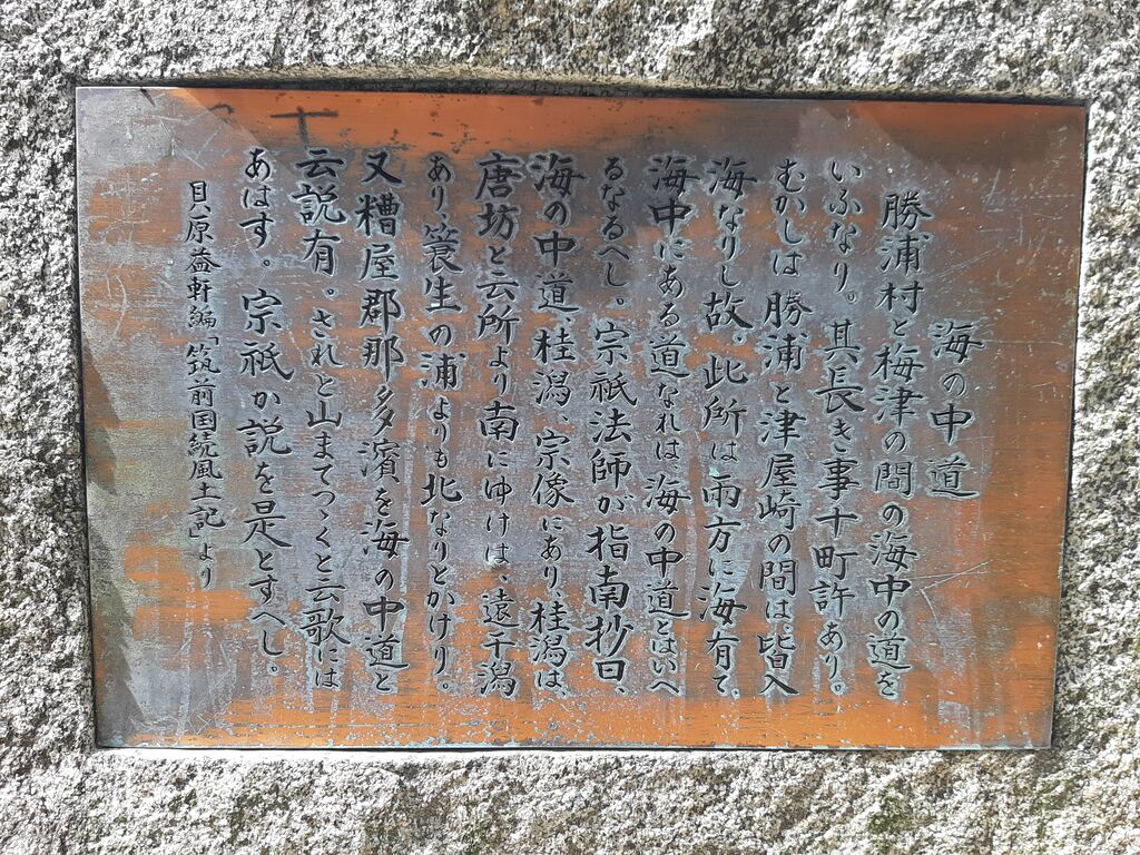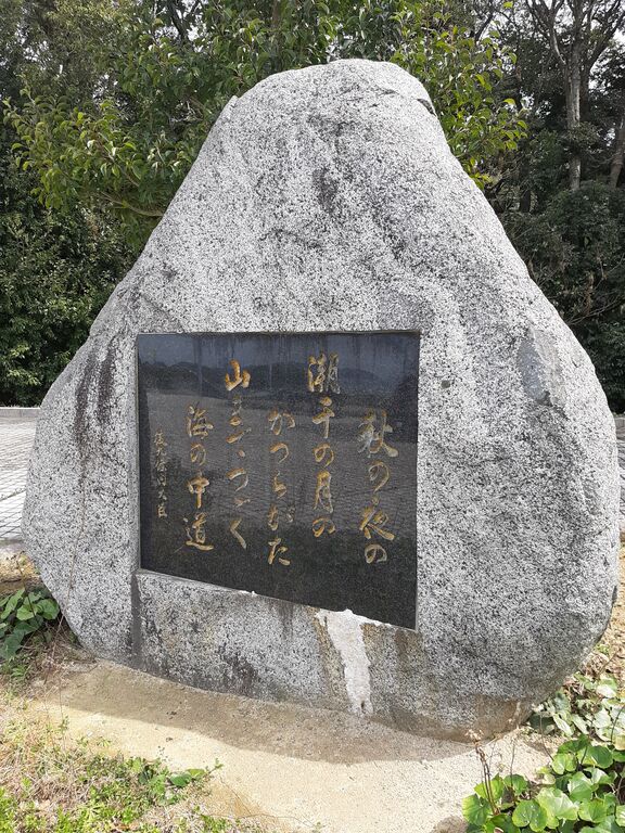 On the back of the monument, it's mentioned that the "Umi-no-Nakamichi (Midway of the Sea)" described in this poem "extends to the mountains."
