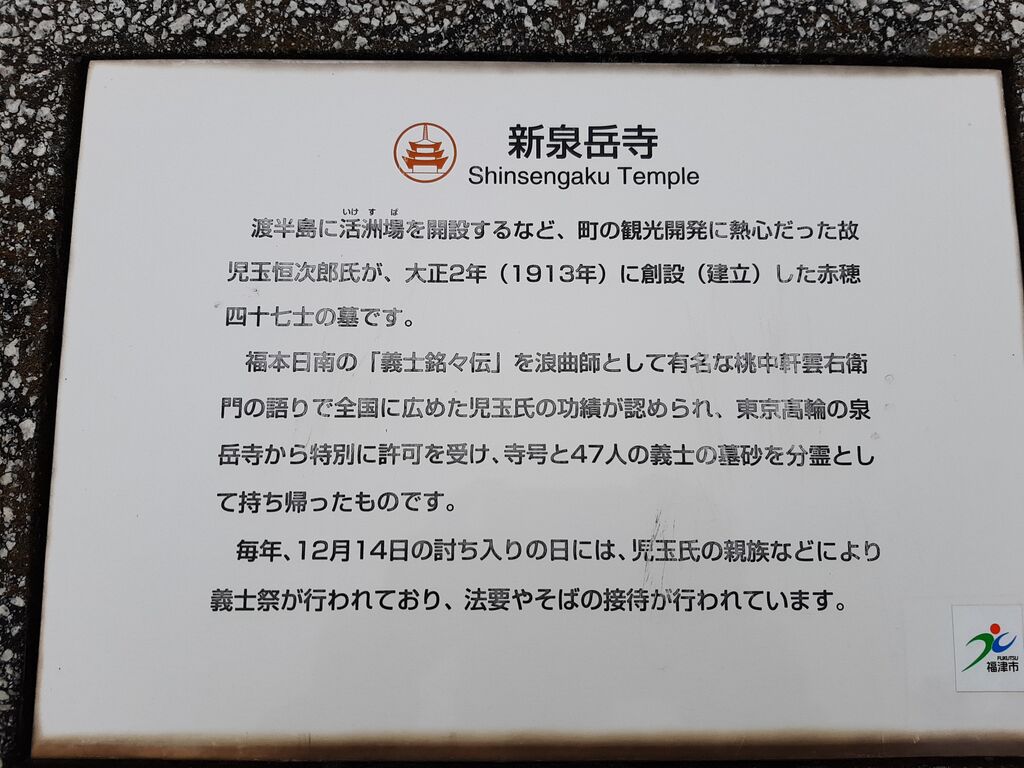 They were enshrined here with permission from Tokyo's Sengaku-ji Temple, with the temple's name and a portion of the rōshi's grave soil.