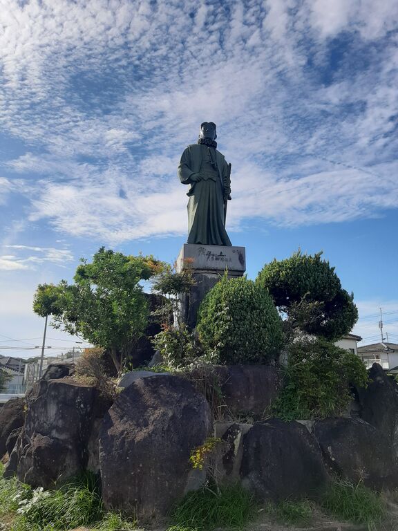 stopping to see a statue of Amakusa Shirou at the terminal