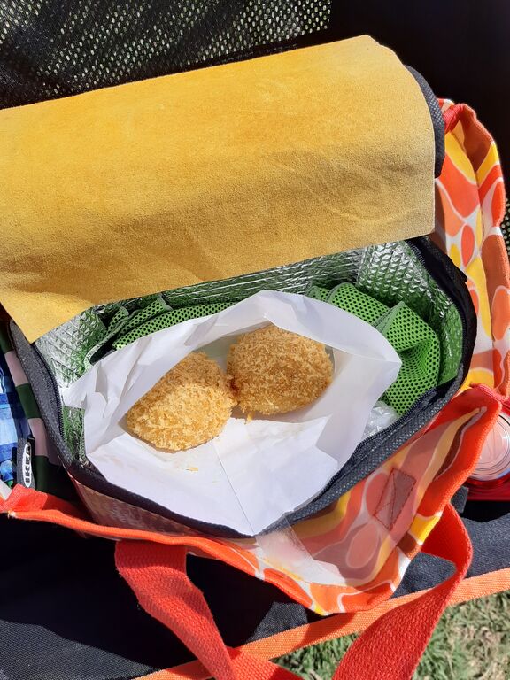 On the way to, I stopped at a butcher in Ashiya for a piping hot croquette.