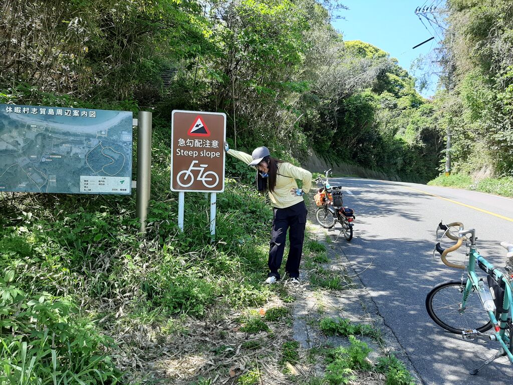When we reached the "Kyuka-mura" (Resort Village) sign, I couldn’t resist the urge to push my bike, but I wasn’t alone — it looks like my granddaughter was ready for a break too!