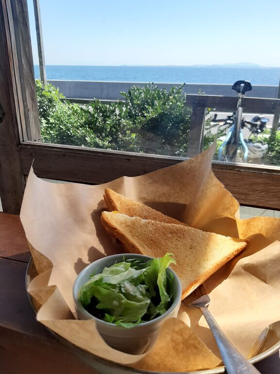 It seems like my granddaughter didn’t eat breakfast, so we stopped for a quick bite at "Hato-ba Chaya" in Hatsu.