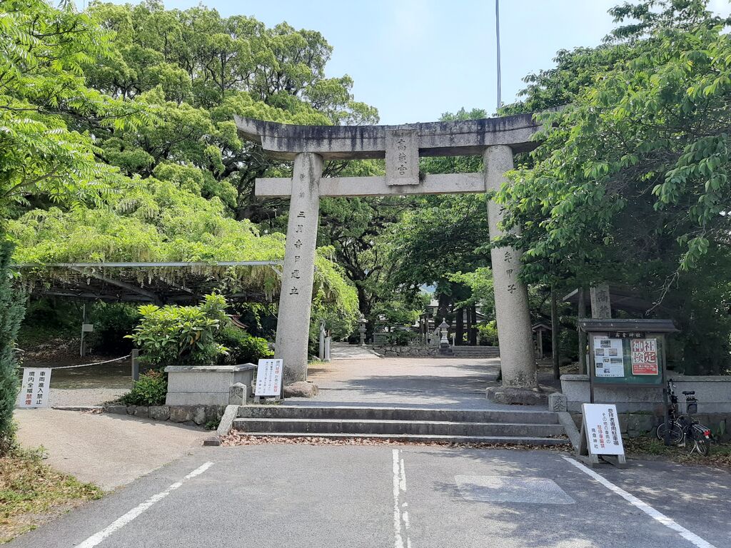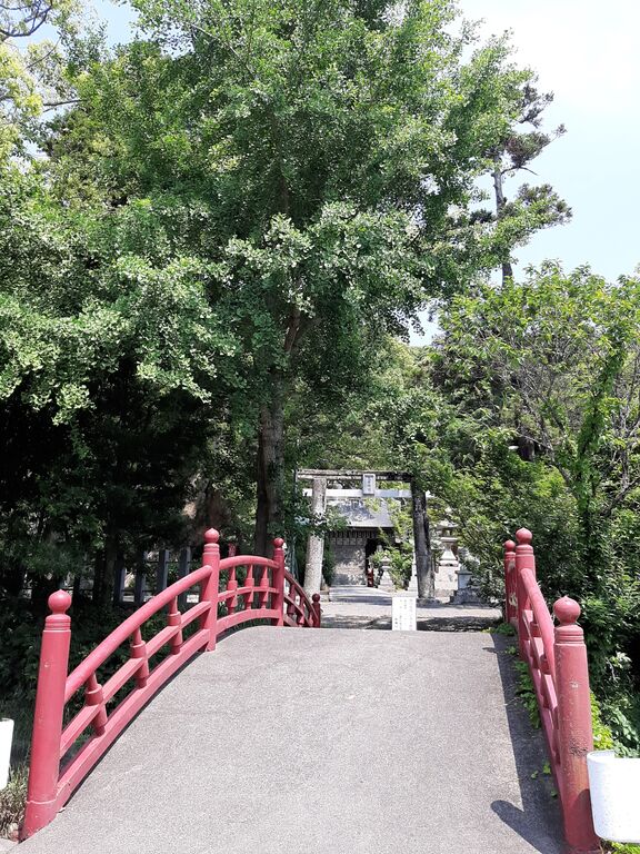 The western approach to the shrine crosses a drum bridge, and as I wandered through the spacious grounds, I felt the urge to cycle from the Okagaki Bicycle Path to the Hibikinada Bicycle Path, leading to the white sand and green pines of the Sanri-Matsubara Coast, heading towards Ashiya.