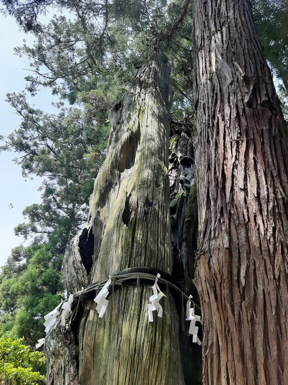 Near the shrine entrance, I greeted the Ayasugi Cedar, resilient despite bearing the scars of past fires.