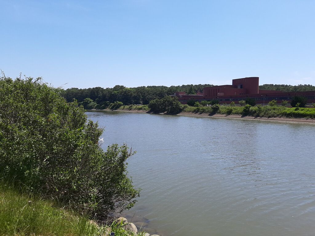 Near the river mouth was a bridge—and something square…
