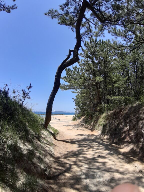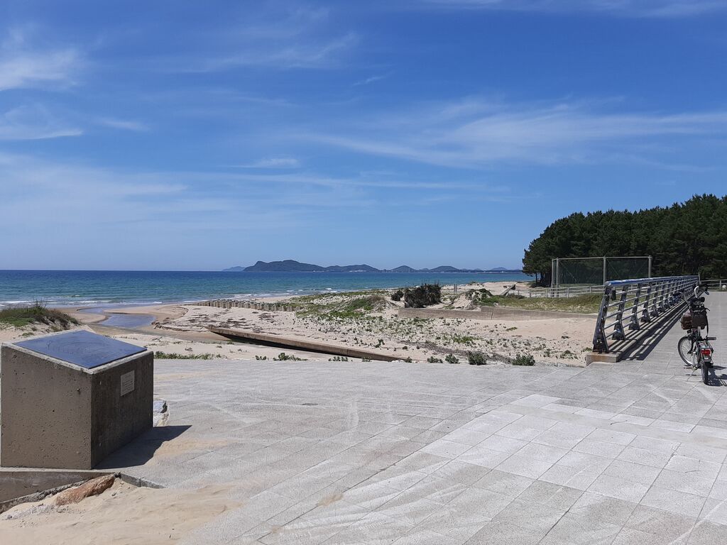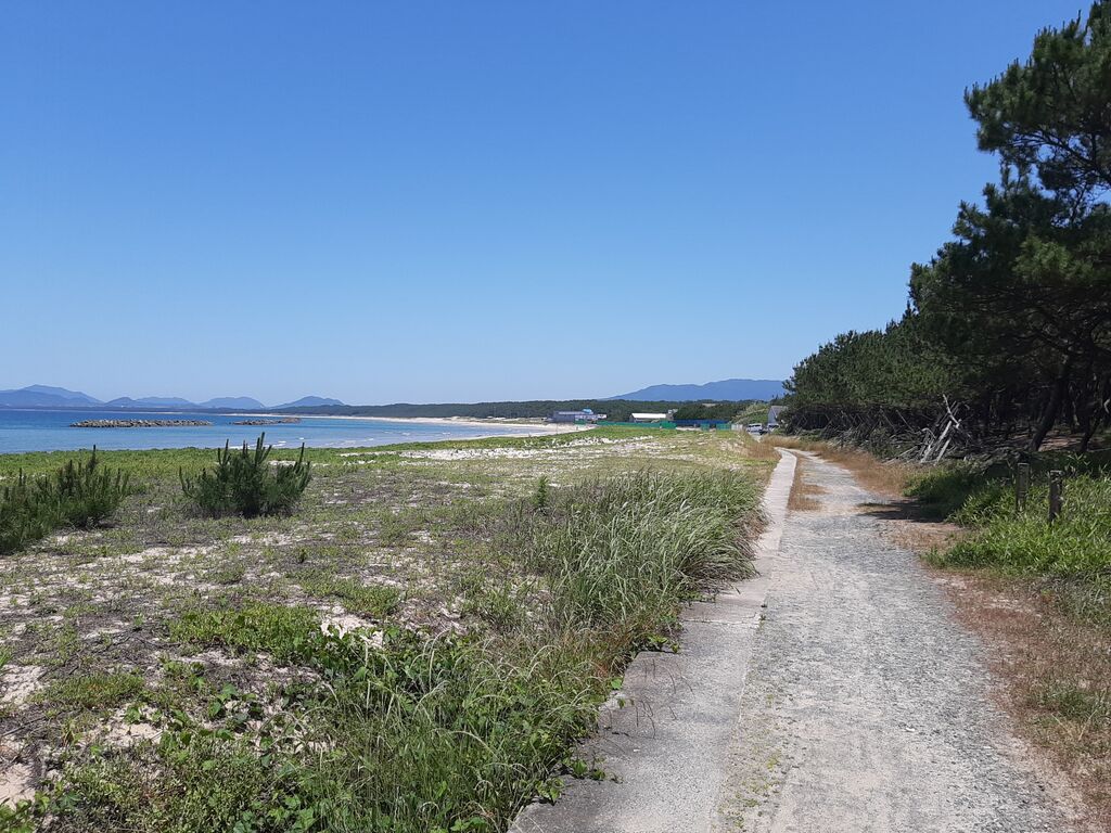 Naturally, I assumed it meant the famous stretch of pine trees running from Okagaki Town (my place) to Ashiya Town, where you can enjoy a beautiful seaside ride through white sand and pine groves.