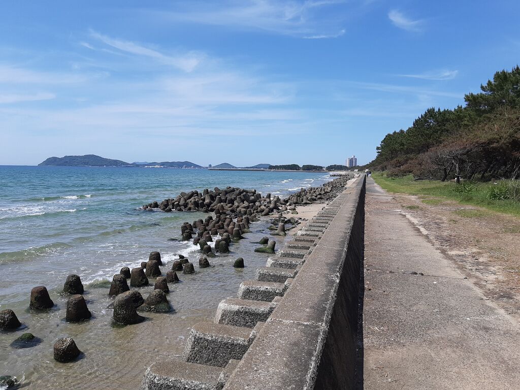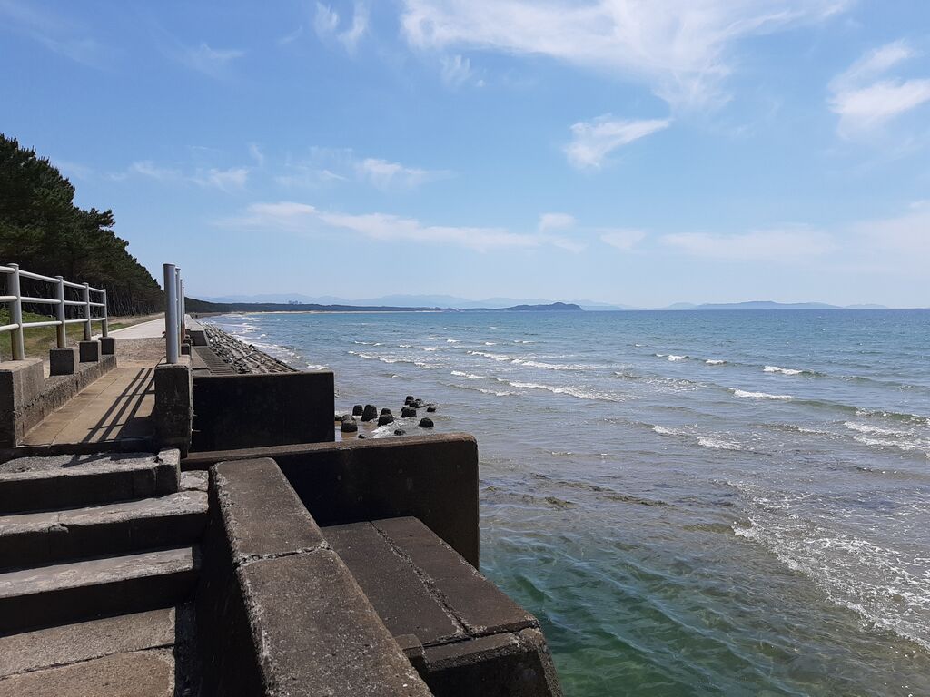 Eventually, the road ended with a view of Miyajihama across the water.