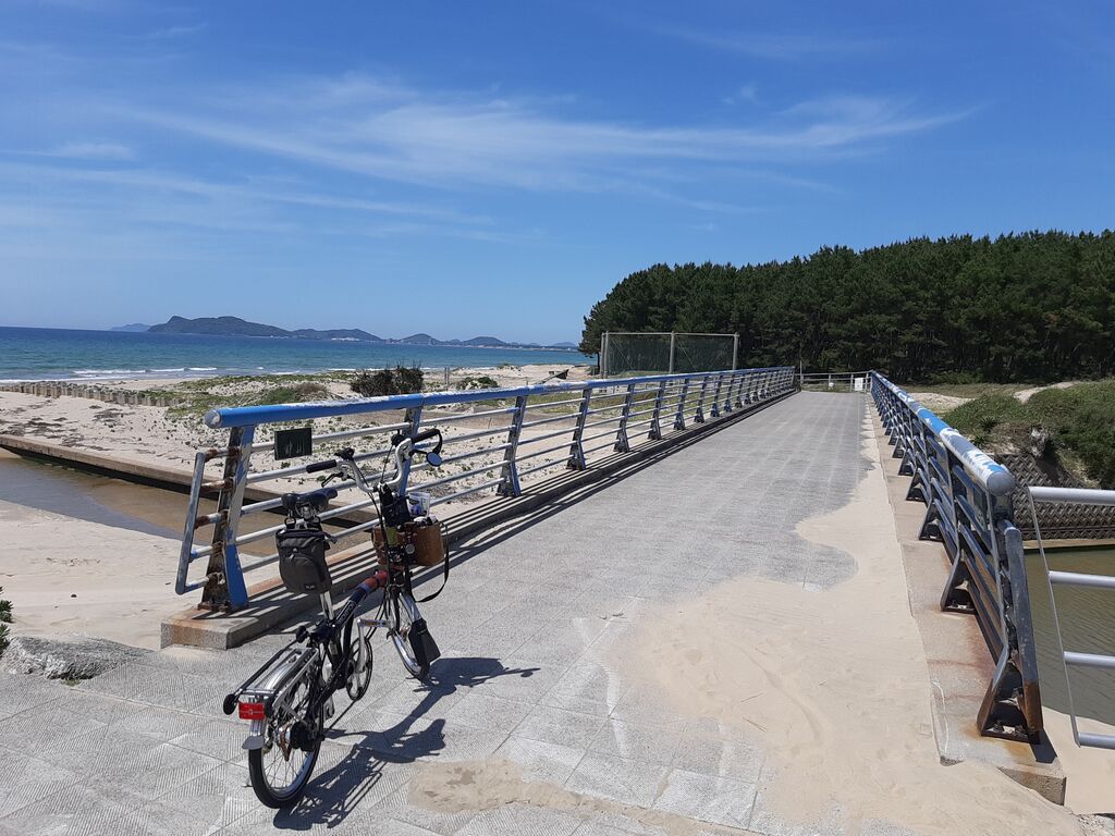 Past the gentle, seemingly endless slope of a suburban development, I hit the main road to Shikanoshima—a familiar one from past rides.